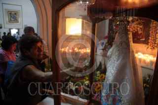 CUERNAVACA, MORELOS, 07SEPTIEMBRE2017.-Del 1 al 10 de septiembre se lleva a cabo la edición número 297 de la feria de Tlaltenango, se espera el arribo de más de 45 peregrinaciones de Morelos y estado vecinos que veneraran a la Virgen de los Milagros. Solo los hombres de una peregrinación de Iztapalapa “florean” (tejen con flores) la fachada como parte de un milagro realizado por esta virgen. FOTO: MARGARITO PÉREZ RETANA /CUARTOSCURO.COM