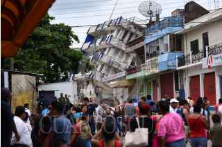 MATÍAS ROMERO, OAXACA, 08SEPTIEMBRE2017.- Hotel sensación y abarrotera del sur fueron los edificios que quedaron destrozados en su totalidad debido al terremoto de 8.2 grados que se registró el día de ayer al filo de la media noche. FOTO: ÁNGEL HERNÁNDEZ /CUARTOSCURO.COM