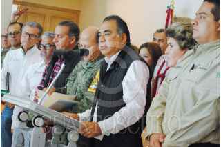 CHILPANCINGO, GUERRERO,08SEPTIEMBRE2017.- Héctor Astudillo, gobernador de Guerrero, ofreció una conferencia para anunciar que se suspenden las clases por el sismo de anoche y el aguacero que azotó la capital por el huracán Katia. FOTO: JOSÉ I. HERNÁNDEZ / CUARTOSCURO.COM