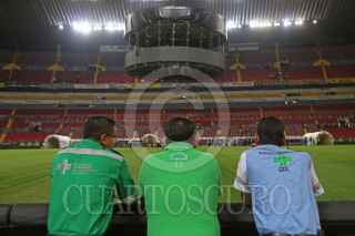 GUADALAJARA, JALISCO. 08SEPTIEMBRE2017.- El juego correspondiente a la Jornada 8 del Torneo Apertura 2017 de la Liga MX, tuvo que cancelarse, ya que la pantalla central no se encontraba a la altura adecuada lo que significaba un riesgo para los jugadores, así lo indicaron elementos de Protección Civil. FOTO: FERNANDO CARRANZA GARCIA / CUARTOSCURO.COM