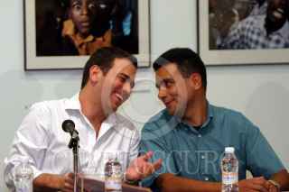 México, D.F. 12 AGOSTO 2004.- Los periodistas Pedro Valtierra, Carlos Loret de Mola, Daniel Aguilar, Ana Luisa Anza y José Antonio López se toman la foto del recuerdo al inaugurar la exposición "Imagenes de Haití" montada en el Centro de la Imagen. FOTO: Sandra Perdomo/CUARTOSCURO.COM