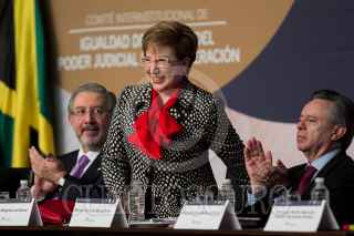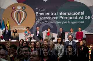 CIUDAD DE MÉXICO, 10SEPTIEMBRE2017.- El ministro Alberto Pérez Dayán; magistrada Janine Madeline Otalora, presidenta del Tribunal Electoral del Poder Judicial de la Federación (TEPJF); el ministro Luis María Aguilar Morales, presidente la Suprema Corte de Justicia de la Nación; la ministra Margarita Luna Ramos, presidenta del Comité Interinstitucional de Igualdad de Género del Poder Judicial de la Federación, y el ministro Javier Laynez Potisek, durante la inauguración del Tercer Encuentro Internacional Juzgando con Perspectiva de Género. FOTO: GALO CAÑAS /CUARTOSCURO.COM
