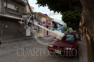 TUXTLA GUTIÉRREZ, CHIAPAS, 11SEPTIEMBRE2017.- Una réplica del sismo del jueves pasado se dejó sentir en el estado lo que provocó que una antena cayera afectado un coche estacionado, no se reportan heridos. FOTO: JACOB GARCÍA /CUARTOSCURO.COM