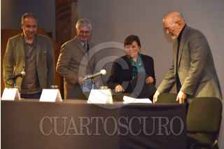 CIUDAD DE MÉXICO, 11SEPTIEMBRE2017.- En la sala Manuel M. Ponce del Palacio de Bellas Artes, Mauricio Montiel Figuerias, Mario Lavista, Elsa Cross y Eduardo Matos Moctezuma participaron en la mesa de reflexión en torno al homenaje del fallecido poeta y filósofo Ramón Xirau (1924-2017). FOTO: MARIO JASSO /CUARTOSCURO.COM
