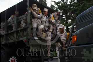 IXTEPEC, OAXACA, 12SEPTIEMBRE2017.- Cientos de elementos del ejército mexicano partieron al estado de Oaxaca para apoyar a remover escombros de edificios colapsados por el sismo de 8.2 grados richter, ademas de ir a entregar más víveres. FOTO: TERCERO DÍAZ /CUARTOSCURO.COM