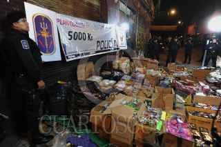 CIUDAD DE MÉXICO., 12SEPTIEMBRE2107.- Mediante un operativo del grupo de fuerza de tarea de la SSP y el INVEA, se logró el decomiso de aproximadamente 5000 kilos de pirotecnia, que mantenían resguardada en una bodega ubicada en la calle 2ª de Roldan marcada con el número 22, en la colonia Centro, mismo que fue clausurado. El material asegurado fue transportado a las instalaciones de fuerza de tarea, en la calle de Piraña en la colonia Del Mar en Tláhuac, para su destrucción. FOTO: LUIS CARBAYO /CUARTOSCURO.COM