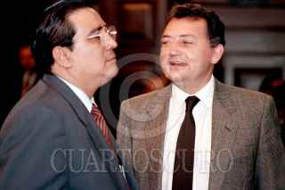 Los senadores Pablo Salazar Mendiguchía y Sami David David cuando eran compañeros de la bancada priísta, ahora son contendientes a ocupar la gubernatura de su estado natal. Foto: José Nuñez/CUARTOSCURO. Archivo