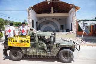 ASUNCIÓN IXTALTEPEC, OAXACA, 13SEPTIEMBRE2017.- Militares y voluntarios de la Cruz Roja patrullan las calles los municipios afectados por el sismo de la semana pasada, brindar ayudar a los damnificados del sismo de 8.2 grados en la escala de Richter. FOTO: TERCERO DÍAZ /CUARTOSCURO.COM