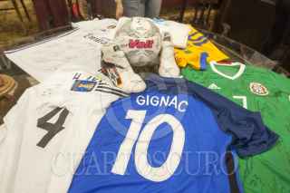 MONTERREY, NUEVO LEÓN, 13SEPTIEMBRE2017.- El jugador de los Tigres André-Pierre Gignac y su esposa subastarán el 27 de septiembre alrededor de 120 artículos deportivos, para apoyar a la niña francesa Zoe Donneaud, quien padece un tumor cerebral, en días recientes fue atendida en esta ciudad. Los artículos incluyen una playera del Real Madrid, playeras de jugadores de la Selección Mexicana, el equipo de Tigres, la camiseta y Zapatos del jugador argentino Lionel Messi, una playera del madrilista Cristiano Ronaldo. Gignac incluyó objetos muy apreciados para él, como el balón con el que hizo por primera vez tres goles en México y la última playera con la que jugó en el equipo de Marsella, último equipo en el limitó en Francia antes de emigrar a Liga MX. FOTO: GABRIELA PÉREZ MONTIEL /CUARTOSCURO.COM
