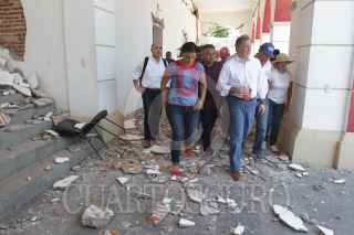IXTALTEPEC, OAXACA, 13SEPTIEMBRE2017.- José Antonio Meade Kuribreña, secretario de Hacienda y Crédito Público, recorrió esta localidad que fue afectada por el sismo de la semana pasada, ahí observo los daños que muchas de las casas sufrieron y conversó con los pobladores. FOTO: ALONSO GALLEGOS /CUARTOSCURO.COM