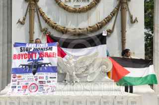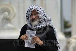 CIUDAD DE MÉXICO, 14SEPTIEMBRE2017.- Integrantes de la comunidad palestina en México protestaron en el Hemiciclo a Juárez contra la visita del ministro israelí Benjamin Netanyahu, a quien acusan de genocidio y la violación de los derechos humanos del pueblo palestino. FOTO: GALO CAÑAS /CUARTOSCURO.COM