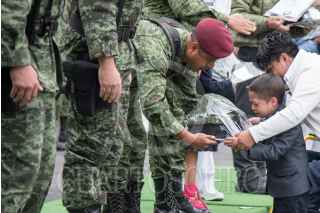 CIUDAD DE MÉXICO, 14SEPTIEMBRE2017.- Se realizó la ceremonia de entrega de uniformes a niños honorarios que participarán en la columna del desfile militar a bordo de un “Turibus”. Los niños recibieron los uniformes en las instalaciones de la Brigada de Fusileros Paracaidistas del Campo Militar 1-A. FOTO: MARIO JASSO /CUARTOSCURO.COM