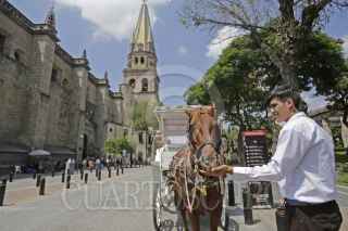 GUADALAJARA, JALISCO. 14SEPTIEMBRE2017.- Calandrias tradicionales durante sus recorridos por el centro de la ciudad, estas en un poco tiempo serán sustituidas por calandrias de motor, esto con la finalidad de que los caballos ya no sean más los que hagan ese trabajo. FOTO: FERNANDO CARRANZA GARCIA /CUARTOSCURO.COM