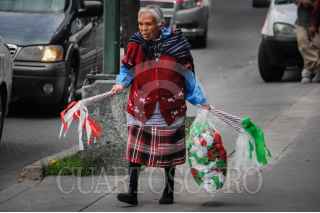 CIUDAD DE MÉXICO, 15SEPTIEMBRE2017.- Sobre el cruce de las avenidas Chapultepec y Bucareli, una señora de la tercera edad vende trompetas tricolores para los festejos por el aniversario del día de la Independencia. FOTO: DIEGO SIMÓN SÁNCHEZ /CUARTOSCURO.COM