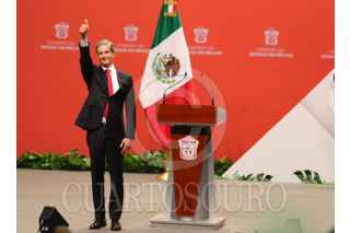 TOLUCA, ESTADO DE MÉXICO, 15SEPTIEMBRE2017.- Alfredo del Mazo Maza gobernador del Estado de México, ofreció un mensaje en el Teatro Morelos después de haber tomado protesta en la Cámara de Diputados como mandatario local para el periodo 2017-2023. FOTO: SAÚL LÓPEZ /CUARTOSCURO.COM