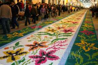 Huamantla, Tlaxcala, 15AGOSTO2004.- Conocida como la "Noche que Nadie Duerme", las celebraciones de la virgen de Santa María de la Caridad duran toda la noche, la procesión visita todas las calles del barrio que han sido ataviadas de alfombras con diverso motiovos. FOTO: Moisés Pablo/CUARTOSCURO.COM