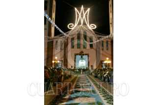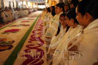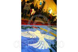 Huamantla, Tlaxcala, 15AGOSTO2004.- La iglesia de la virgen de Santa María de la Caridad, adornada con alfombras, de aquí parte la procesión que vista los barrios aledaños. FOTO: Moisés Pablo/CUARTOSCURO.COM