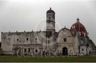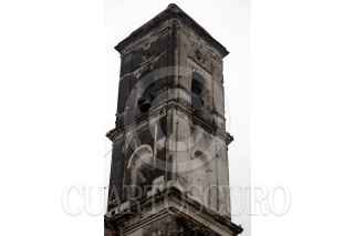 JONACATEPEC, MORELOS, 17SEPTIEMBRE2017.-Conjunto conventual San Agustín, en la fachada y campanario se puede observar huellas de disparos de la época de la Revolución. FOTO: MARGARITO PÉREZ RETANA /CUARTOSCURO.COM