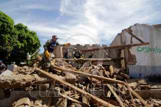 CINTALAPA, CHIAPAS, 18SEPTIEMBRE2017.- Continua el recuento de los daños y los derribes de las casas marcadas como daño total (DT) por las autoridades correspondientes en la colonia Lazaro Cardenas, municipio de Cintalapa de Figueroa, Chiapas, lugar en donde el terremoto del pasado 7 de septiembre ocasionara múltiples daños en las viviendas, y en el que en dias pasados visitara el lugar el presidente de la republica Enrique Peña Nieto, para refrendar su compromiso con los damnificados. FOTO. JESÚS GARCÍA /CUARTOSCURO.COM