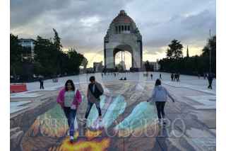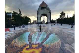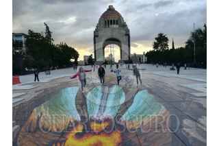 CIUDAD DE MÉXICO, 18SEPTIEMBRE2017.- Concluyó la realización del mural "Amor Eterno" del artista urbano Edgar Muller, en la explanada del Monumento a la Revolución. Las obras del alemán se caracterizan por tener un efecto óptico tridimensional. Los paseantes aprovecharon la ocasión para tomarse la foto en medio de un inframundo imaginario, en el cual también se aprecian los volcanes Popocatépetl e Iztaccíhuatl. FOTO: MOISÉS PABLO /CUARTOSCURO.COM