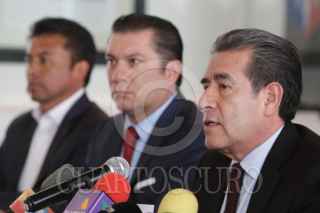 PUEBLA, PUEBLA 18SEPTIEMBRE2017.- El secretario general de gobierno, Diódoro Carrasco en compañía de los titulares de la SSP y FGE, Jesús Morales y Víctor Carrancá, anunciaron el retiro de permiso a la empresa Cabify tras el feminicidio de la estudiante Mara Castilla. FOTO: HILDA RÍOS/ CUARTOSCURO.COM
