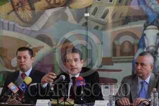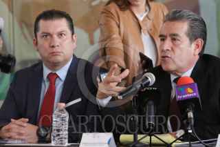 PUEBLA, PUEBLA 18SEPTIEMBRE2017.- El secretario general de gobierno, Diódoro Carrasco en compañía de los titulares de la SSP y FGE, Jesús Morales y Víctor Carrancá, anunciaron el retiro de permiso a la empresa Cabify tras el feminicidio de la estudiante Mara Castilla. FOTO: HILDA RÍOS/ CUARTOSCURO.COM