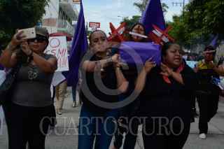 CHILPANCINGO, GUERRERO.18SEPTIEMBRE2017.- Mujeres y hombres del Colectivo Caminado Violeta marcharon del monumento a las banderas A Ciudad Universitaria (C.U.) en contra del feminicidio y para sumarse a la movilización en exigencia de castigo y justicia por el asesinato de Mara Castillo ocurrido en Puebla. FOTO: JOSÉ I. HERNÁNDEZ / CUARTOSCURO.COM