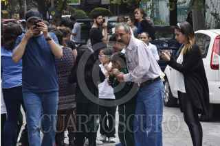 CIUDAD DE MÉXICO, 19SEPTIEMBRE2017.- Alumnos de una escuela ubicada en la colonia Condesa, fueron evacuados de forma adecuada debido al sismo de 7.1 grados Richter. En la imagen un padre abraza a su hija después de haberse encontrado. FOTO: MARIO JASSO /CUARTOSCURO.COM