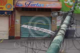 CIUDAD DE MÉXICO 20SEPTIEMBRE2017.- En la esquina de Avenida Chapulpetec y Veracruz en la colonia condesa se observa un poste que cayó debido al sismo que azotó varios estados de la república el día de ayer. FOTO: VIRIDIANA SANDOVAL /CUARTOSCURO.COM
