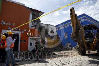 ATLIXCO, PUEBLA 20SEPTIEMBRE2017.- Continúan las labores de limpieza y remoción de escombros en los inmuebles afectados en el municipio de Atlixco, uno de los mas afectados en el estado de Puebla, tras el sismo de 7.1 grados registrados la tarde de ayer. FOTO: HILDA RÍOS/ CUARTOSCURO.COM