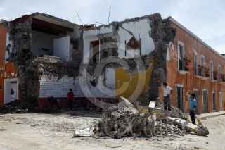 ATLIXCO, PUEBLA 20SEPTIEMBRE2017.- Continúan las labores de limpieza y remoción de escombros en los inmuebles afectados en el municipio de Atlixco, uno de los mas afectados en el estado de Puebla, tras el sismo de 7.1 grados registrados la tarde de ayer. FOTO: HILDA RÍOS/ CUARTOSCURO.COM