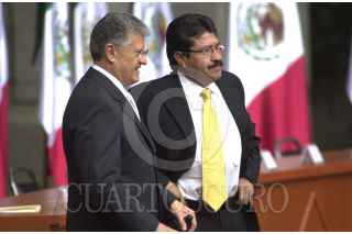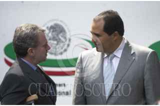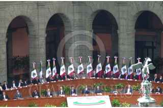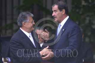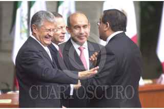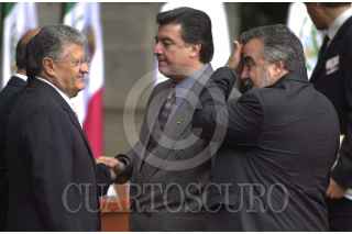 MEXDF18AGO2004.-El gobernador Alfonso Sanchez Anaya,(Tlaxcala) y Alejandro Encinas secretario de gobierno del D.F platican en la clausura de los trabajos de la Reforma Hacendaria que se llevó a cabo en Palacio Nacional. FOTO: Eunice Adorno/CUARTOSCURO.COM