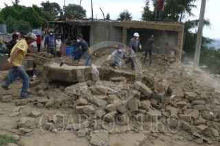 ECATZINGO, ESTADO DE MÉXICO, 21SEPTIEMBRE2017.- Comienzan a derribar casas afectadas que resultados inhabitables tras el sismo que se registró el martes 19 de Septiembre. FOTO: SAÚL LÓPEZ /CUARTOSCURO.COM