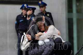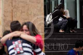 CIUDAD DE MÉXICO, 22SEPTIEMBRE2017.- Familiares y amigos de fallecidos en el terremoto del pasado martes acudieron al Instituto de Ciencias Forenses (Incifo) para realizar el reconocimiento de los cuerpos. En la imagen, familiares de una jóven fallecida en la fábrica de téxtiles de Chimalpopoca lloran al enterarse de la fatal noticia. FOTO: GALO CAÑAS /CUARTOSCURO.COM