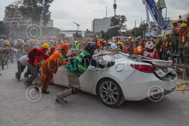 CIUDAD DE MÉXICO, 22SEPTIEMBRE2017.- Sociedad civil, rescatistas y elementos del Ejército terminaron de remover escombros en el edificio que colapsó en la calle de Chimalpopoca, en la colonia Obrera, luego del sismo de 7.1 grados Richter. Elementos del ejército entonaron el himno nacional y guardaron un minuto de silencio al terminar de retirar los escombros. FOTO: ISAAC ESQUIVEL /CUARTOSCURO.COM