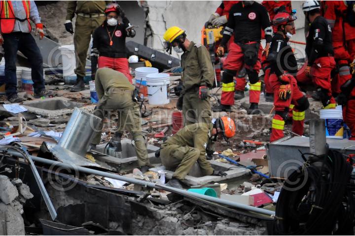 CIUDAD DE MÉXICO, 23SEPTIEMBRE2017.- Continúan los labores de rescate y remoción en el edificio de Álvaro Obregón 286, en la colonia Roma. Rescatistas de Estados Unidos e Israel apoyan con los trabajos de ayuda. Familiares de las victimas dieron un mensaje a los medios de comunicación por la madrugada para decir que autorizaron el uso de maquinaria pesada, hecho al que se opusieron por más de dos días. Se calcula que hay más de 40 personas dentro de los escombros. En la imagen, rescatistas se llevan en camilla a una de sus compañeras que sufrió un accidente. FOTO: DIEGO SIMÓN SÁNCHEZ /CUARTOSCURO.COM