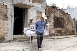 TEHUITZINGO, PUEBLA, 23SEPTIEMBRE2017.- Autoridades y voluntarios realizan labor de remoción de escombros, limpieza y demolición de viviendas dañadas en el municipio de Tehuitzingo, tras el sismo de 7.1 grados del pasado 19 de septiembre. FOTO: HILDA RÍOS /CUARTOSCURO.COM