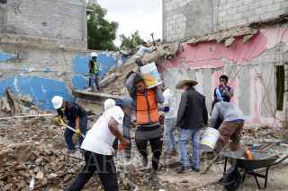 TEHUITZINGO, PUEBLA, 23SEPTIEMBRE2017.- Autoridades y voluntarios realizan labor de remoción de escombros, limpieza y demolición de viviendas dañadas en el municipio de Tehuitzingo, tras el sismo de 7.1 grados del pasado 19 de septiembre. FOTO: HILDA RÍOS /CUARTOSCURO.COM