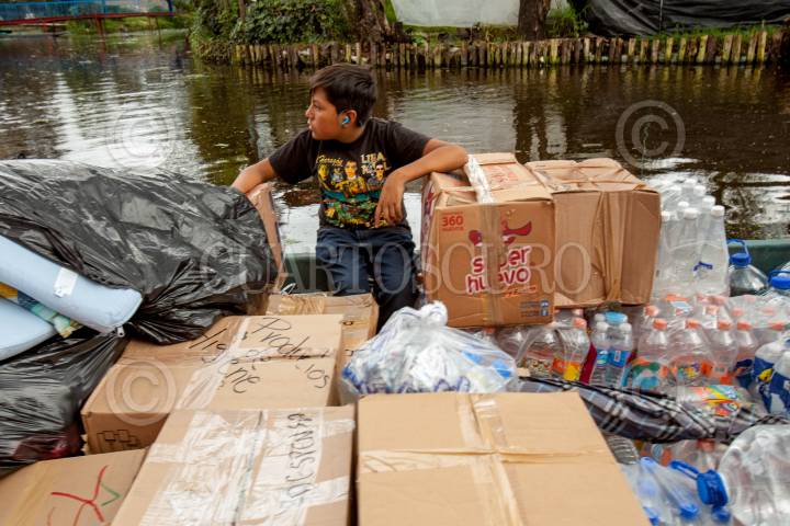 CIUDAD DE MÉXICO, 23SEPTIEMBRE2017.- Entrega de víveres en zonas afectadas de las chinampas de Xochimilco, ahí se registraron daños estructurales sin pérdidas humanas, sin embargo muchos se han quedado sin agua potable, en algunos puntos sin hogar, teniendo que refugiarse en algunos templos o con vecinos o familiares. FOTO: JUAN PABLO ZAMORA /CUARTOSCURO.COM