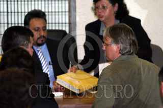 México, D.F., 24AGOSTO2004.- Carlos Imaz, exdelegado en Tlalpan, fue encontrado culpable de haber cometido delitos electorales, durante una audiencia en el Reclusorio Norte. Imaz fue condenado a tres años seis meses de prisión, sin embargo no pisara la cárcel al pagar una multa y tendrá que ir a firmar cada semana a los juzgados del reclusorio. FOTO: Moisés Pablo/CUARTOSCURO.COM