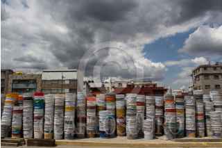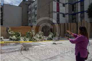 CIUDAD DE MÉXICO, 24SEPTIEMBRE2017.- Botes con los que se retiró el escombró del edicifio colapsado en Viaducto y Torreón, en la Narvarte. FOTO: ISAAC ESQUIVEL /CUARTOSCURO.COM