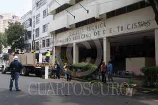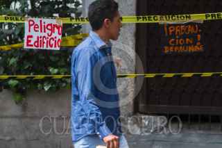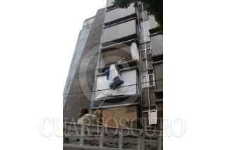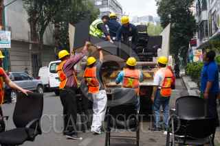 CIUDAD DE MÉXICO, 25SEPTIEMBRE2017.- En la colonia Juárez son varios los inmuebles que están desahuciados para su uso, sus ocupantes intentan sacar lo que pueden y quieren saber si van a tener el apoyo prometido por las autoridades. Los vecinos de edificios aledaños se muestran nerviosos al saber que están en riesgo de colapso si se presentará otro temblor. En la imagen hombres sacan un sillón del tercer piso de unos departamentos, ubicado en la esquina de Liverpool y Dinamarca. FOTO: MOISÉS PABLO /CUARTOSCURO.COM
