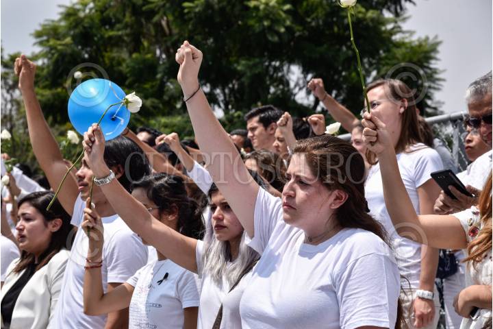 CIUDAD DE MÉXICO, 25SEPTIEMBRE2017.- La comunidad del Tec de Monterrey campus Ciudad de México llevaron a cabo el homenaje póstumo para honrar la memoria de Juan Carlos, Edgar Michel, Alejandro Rubén y Luis Manuel, víctimas del sismo del pasado 19 de septiembre. El homenaje fue realizado en el Centro Cultural y Deportivo de dicha univesidad, en donde acudieron más de 5 mil personas vestidas de blanco. FOTO: MARIO JASSO /CUARTOSCURO.COM