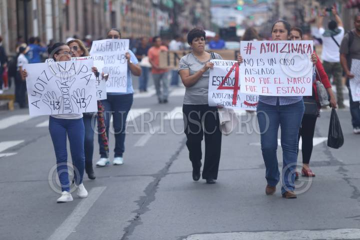 MORELIA, MICHOACÁN. 26SEPTIEMBRE2017. Con motivo del tercer aniversario de la desaparición forzada de los 43 normalistas de Ayotzinapa, sociedad civil y estudiantes llevaron a cabo una manifestación en la ciudad para exigir justicia. FOTO: JUAN JOSÉ ESTRADA SERAFÍN /CUARTOSCURO.COM