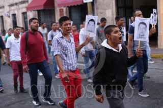 MORELIA, MICHOACÁN. 26SEPTIEMBRE2017. Con motivo del tercer aniversario de la desaparición forzada de los 43 normalistas de Ayotzinapa, sociedad civil y estudiantes llevaron a cabo una manifestación en la ciudad para exigir justicia. FOTO: JUAN JOSÉ ESTRADA SERAFÍN /CUARTOSCURO.COM