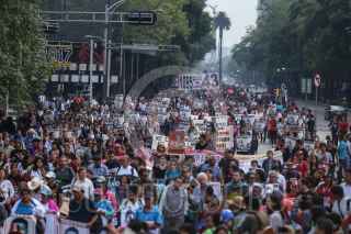CIUDAD DE MÉXICO, 26SEPTIEMBRE2017.- Familiares de los 43 estudiantes desaparecidos de Ayotzinapa, en compañía de organizaciones sociales y estudiantiles marcharon en silencio del Ángel de la Independencia al Antimonumento +43 en Reforma y Juárez, al complirse 3 años del ataque que sufieron en Iguala, Guerrero. FOTO: ADOLFO VLADIMIR /CUARTOSCURO.COM