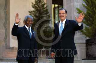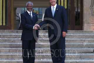 México, D.F., 07SEPTIEMBRE2004.- Vicente Fox Quesada, presidente de la República, recibió a Kofi Annan, secretario general de ONU, en la residencia oficial de los Pinos. FOTO: Moisés Pablo/CUARTOSCURO.COM