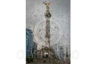 CIUDAD DE MÉXICO, 30SEPTIEMBRE2017.- Gotas de lluvia en el cristal de un camión luego de un chubasco que cayó durante la tarde del sábado, al fondo se observa la columna del Ángel de la Independencia. FOTO: DIEGO SIMÓN SÁNCHEZ /CUARTOSCURO.COM
