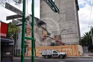 CIUDAD DE MÉXICO, 30SEPTIEMBRE2017.- Trabajadores realizan trabajados de reforzamiento en la estructura del edificio número 174, y limpieza de los escombros del edificio número 176, que se derrumbó debido al sismo de 7.1 grados del pasado 19 de septiembre. FOTO: MARIO JASSO /CUARTOSCURO.COM