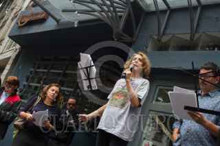 CIUDAD DE MÉXICO, 01OCTUBRE2017.- La actriz Beatriz Moreno leyó un texto junto con otros actores afuera del Círculo Teatral, ubicado en la calle de Veracruz, en la colonia Condesa, inmueble severamente dañado por el sismo del pasado 19 de septiembre y catalogado como inhabitable. Varios actores se congreagaron afuera de este espacio de difusión teatral, para realizar una mifestación cultural en busca de apoyo y así poder continuar con el impulso al teatro mexicano. FOTO: MOISÉS PABLO /CUARTOSCURO.COM